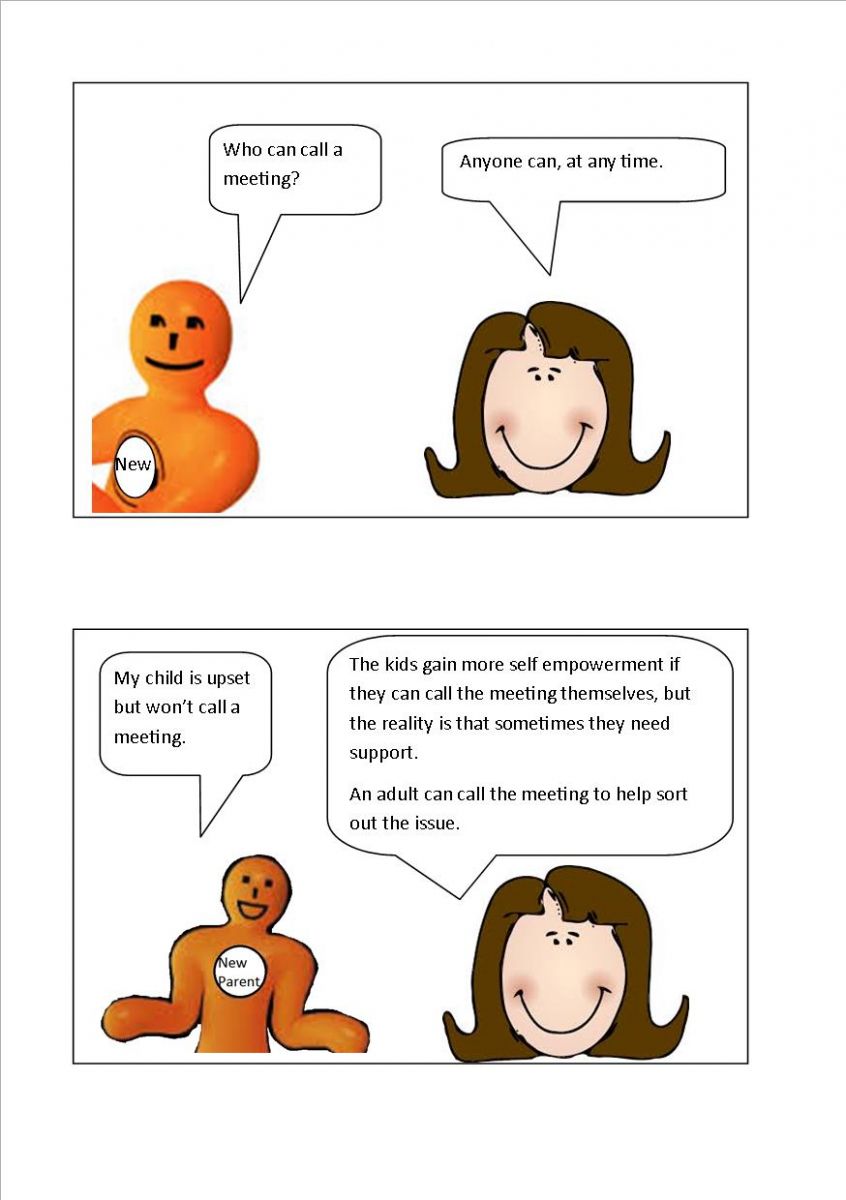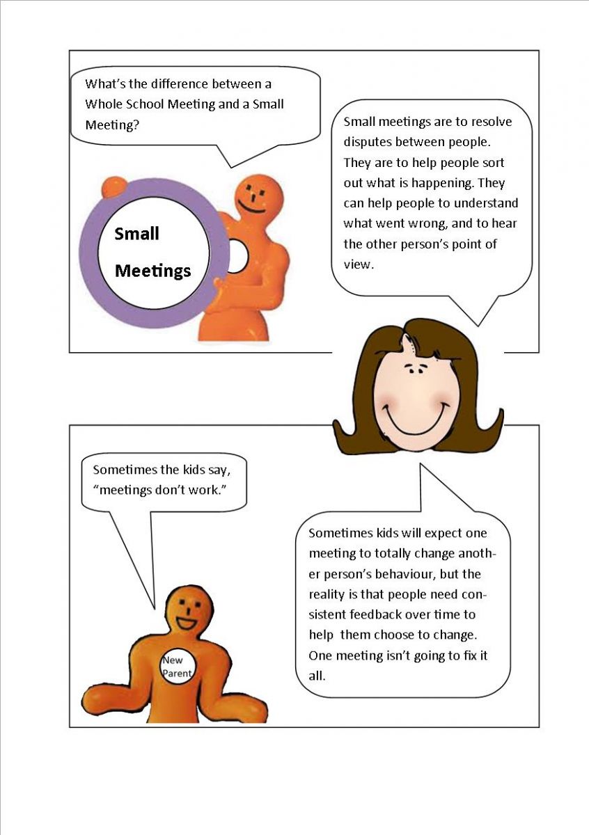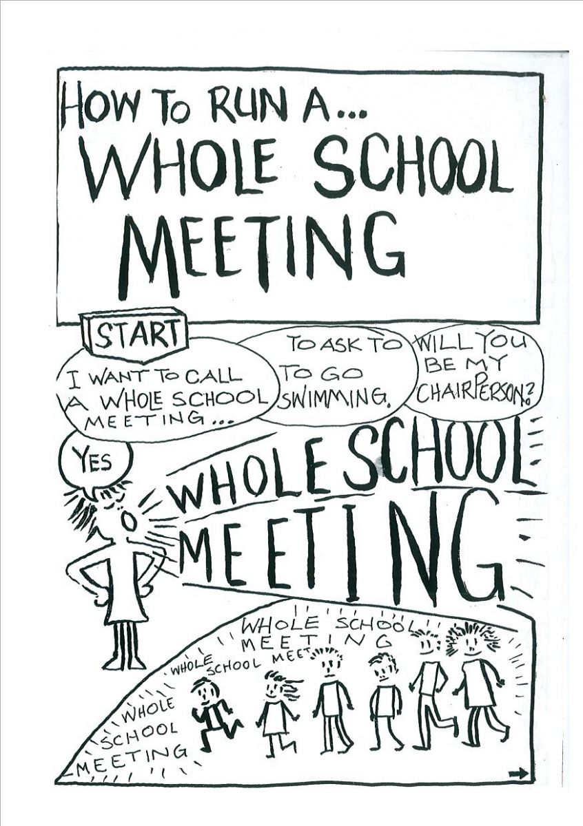 Meetings enable our school to function, they are used for decision making, and conflict resolution.